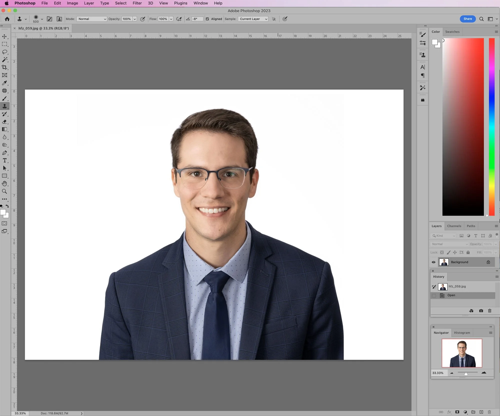Professional photo lighting washes out your features and adds shine. Professional makeup is recommended for both men and woman to counter these issues. A professional makeup artist can do wonders for 1. Eliminating wrinkles 2. Fixing complexion/color issues, 3. Eliminating shine, and 4. Removing blemishes. When people ask me about “Photoshopping them,” what they really can benefit from is professional makeup. Makeup gives a much more natural look to your photo, whereas heavy Photoshop looks very fake. I have referrals for hair/makeup artists that can be present during our shoot and cannot recommend this enough. A professional makeup artist can be cheaper than spending money on retouching to fix skin issues.